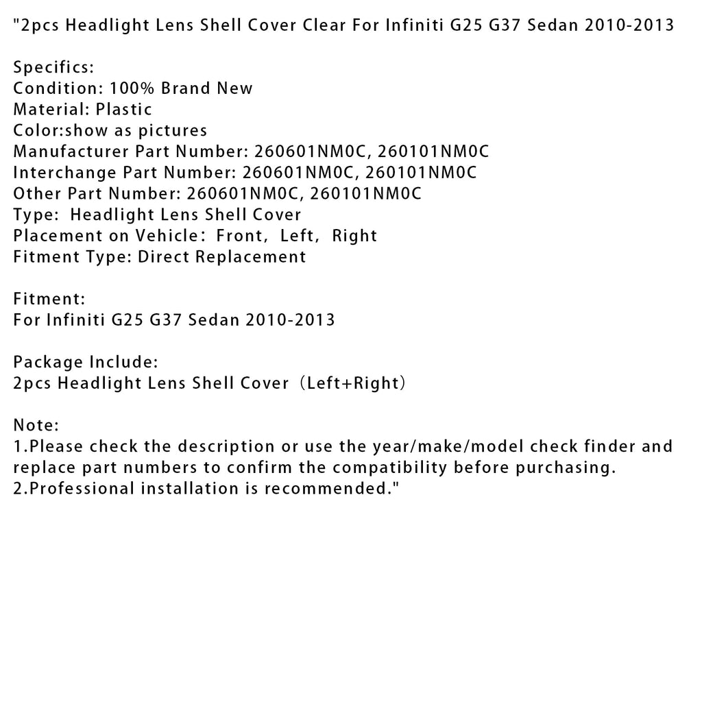 2pcs Headlight Lens Shell Cover Clear For Infiniti G25 G37 Sedan 2010-2013
