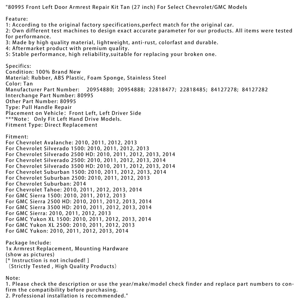 80995 Front Left Door Armrest Repair Kit Tan (27 inch) For Select Chevrolet/GMC Models