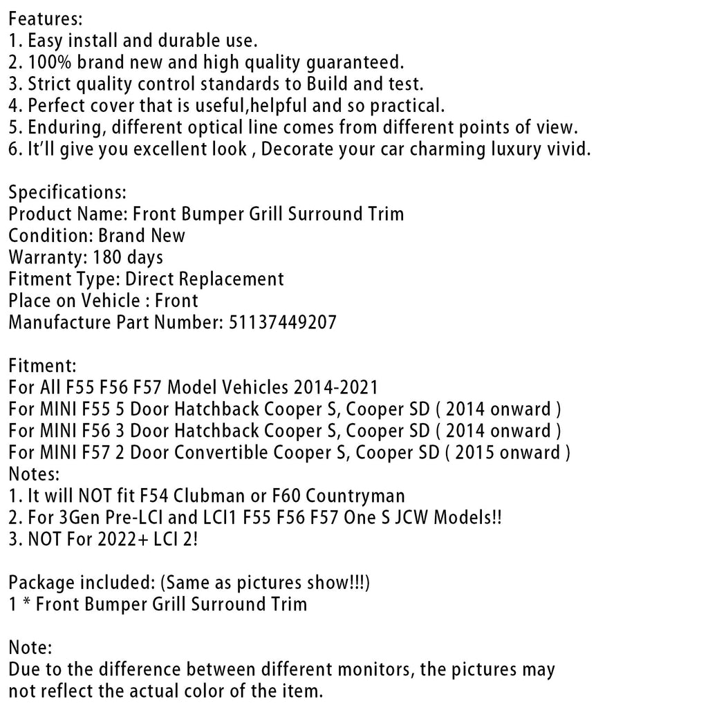 For All F55 F56 F57 Model Vehicles 2014-2021