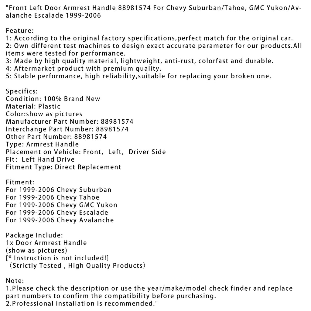 Front Left Door Armrest Handle 88981574 For Chevy Suburban/Tahoe, GMC Yukon/Avalanche Escalade 1999-2006