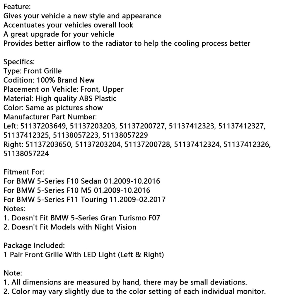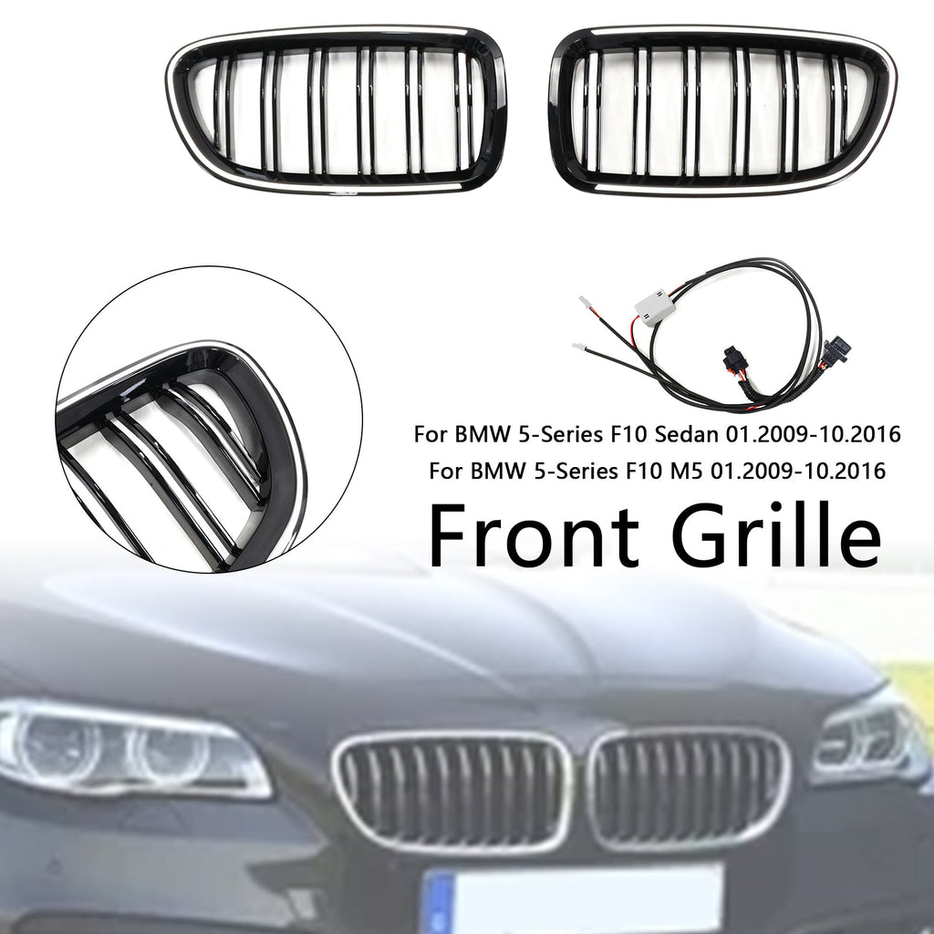 Kidney Bumper Grille Grill Fit BMW 5 Series F10 F11 2010-2016 Gloss Black