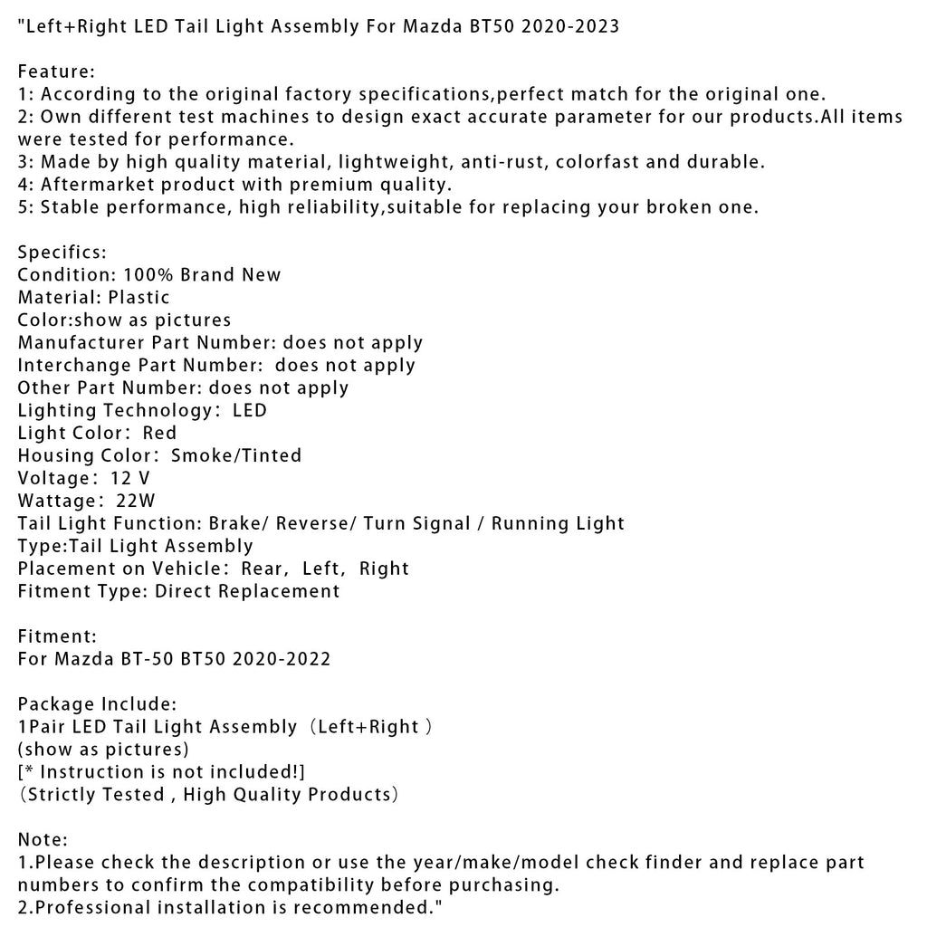 Left+Right LED Tail Light Assembly For Mazda BT50 2020-2023