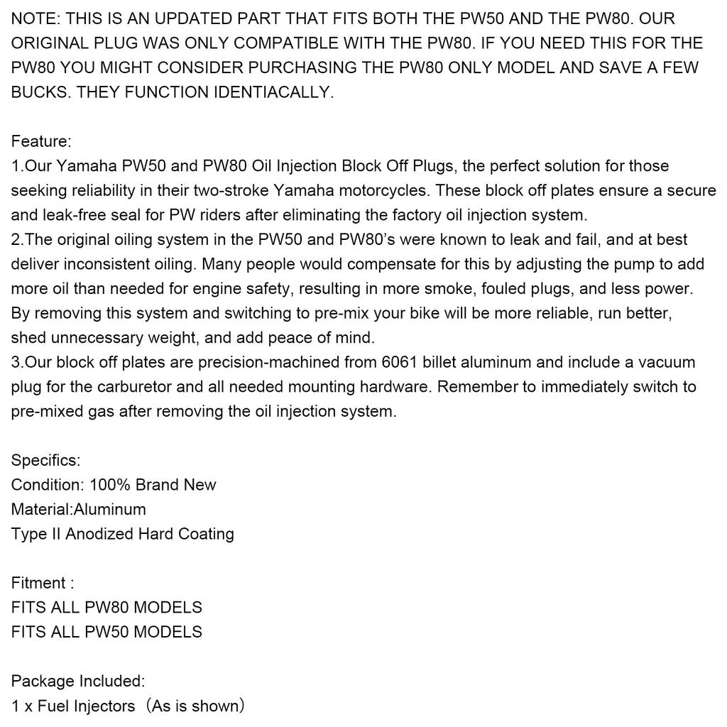 1.Our Yamaha PW50 and PW80 Oil Injection Block Off Plugs, the perfect solution for those seeking reliability in their two-stroke Yamaha motorcycles. These block off plates ensure a secure and leak-free seal for PW riders after eliminating the factory oil injection system.