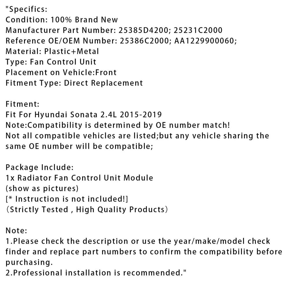 Radiator Fan Control Module For Hyundai Sonata 2.4L 2015-2019 25385D4200