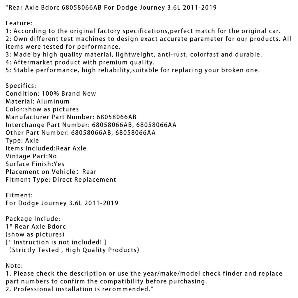 Rear Axle Bdorc 68058066AB For Dodge Journey 3.6L 2011-2019