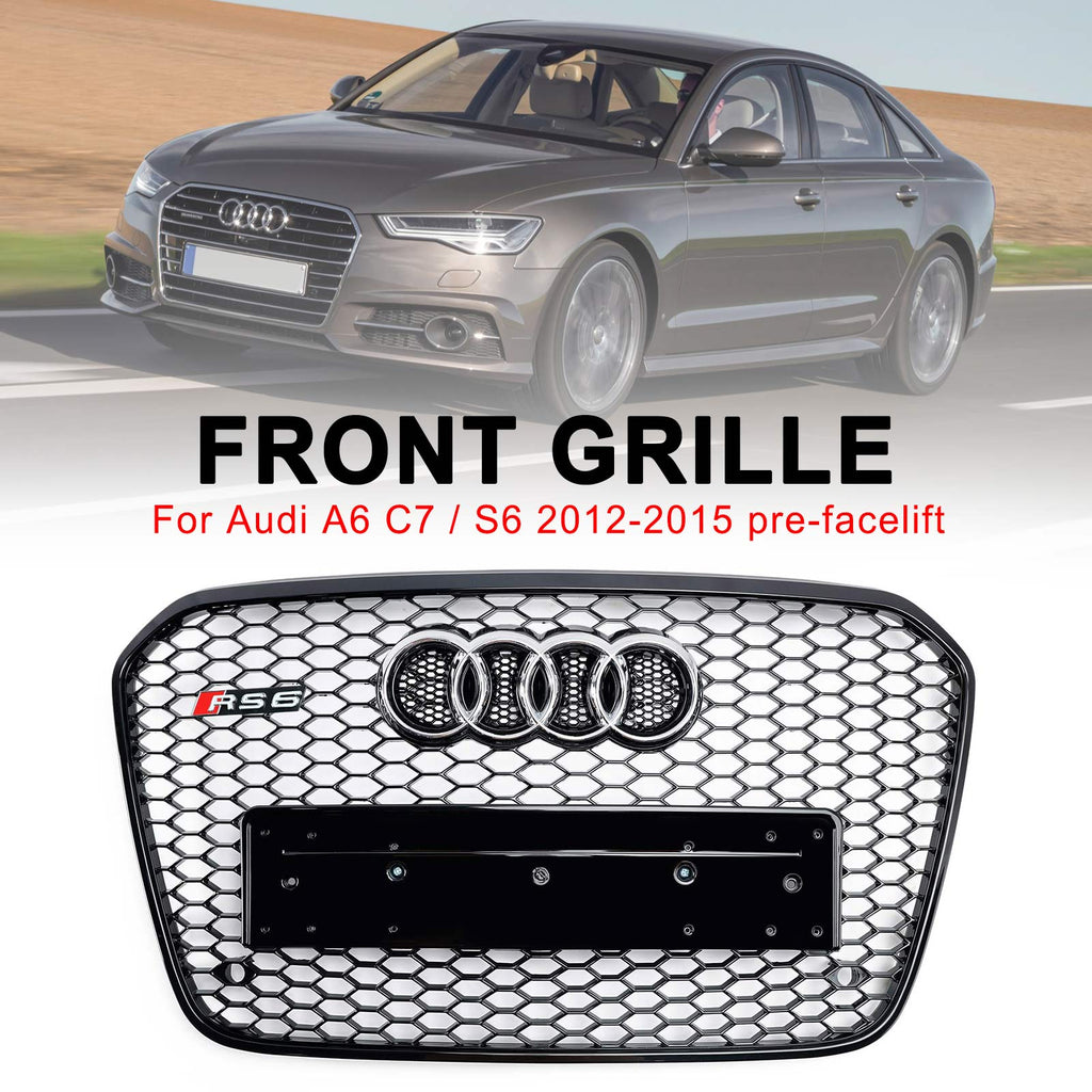 RS6 Style Honeycomb Front Bumper Grille Grill Fit For Audi A6 C7 S6 2012-2015