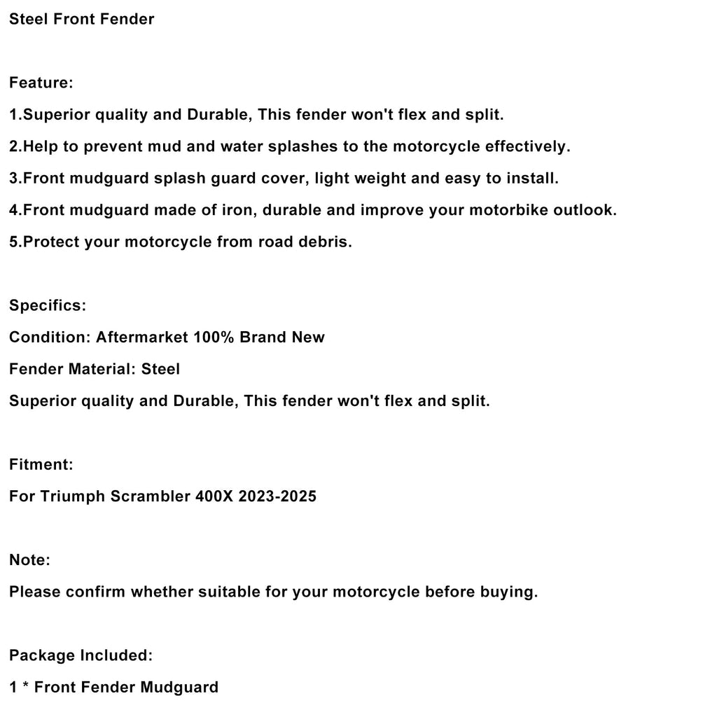 Steel Front Fender Mudguard For Scrambler 400X 2023-2025