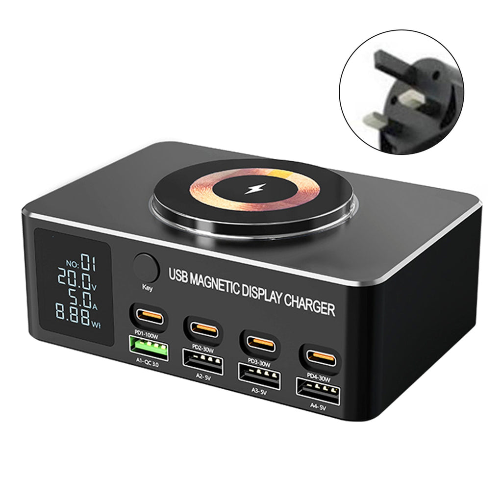 140W Fast Charging Charger Intelligent Digital Display PD100W Mobile Phone Notebook Magnetic Wireless Charging Multi-Port USB Charger UK Plug