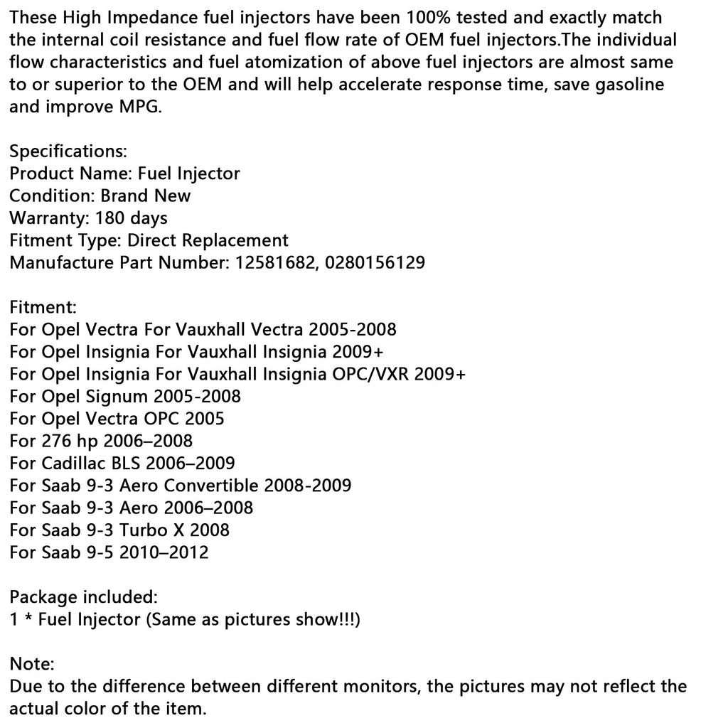 이 고임피던스 연료 분사기는 100% 테스트되었으며 OEM 연료의 내부 코일 저항 및 연료 유량과 정확히 일치합니다. injectors.The 위 연료 분사기의 개별 흐름 특성과 연료 분무는 OEM과 거의 동일하거나 더 뛰어나며, 반응 시간을 단축하고, 연료를 절약하며, MPG를 개선하는 데 도움이 됩니다.