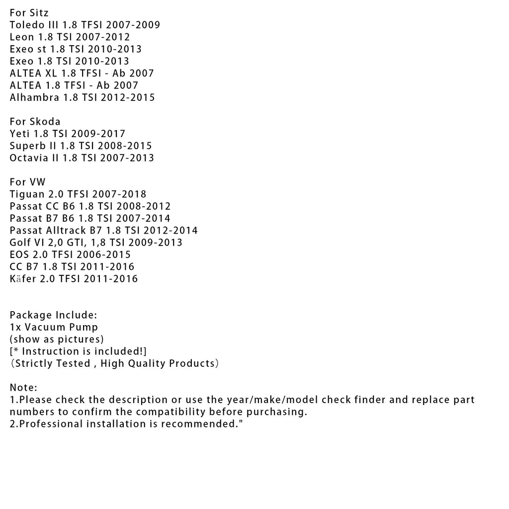 2011-2016 VW K?fer 2.0 TFSI Vacuum Pump 06J145100N 7.24807.28.0 Generic