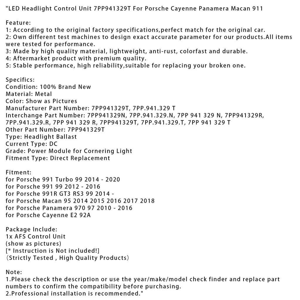2014 2015 2016 2017 2018 Porsche Macan 95 LED Headlight Control Unit 7PP941329T
