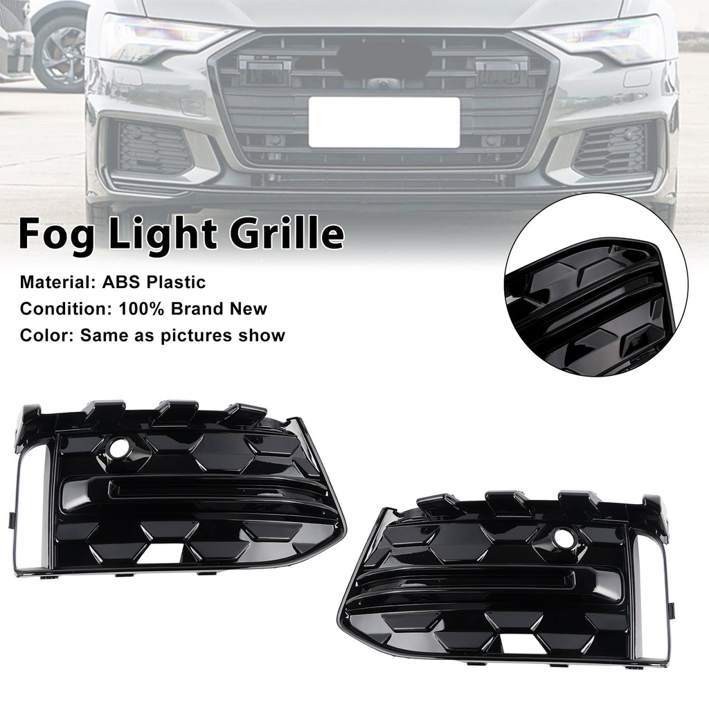 2PCS Front Bumper Fog Light Grille Trim Fit Audi A6L C8PA 2023+ Black