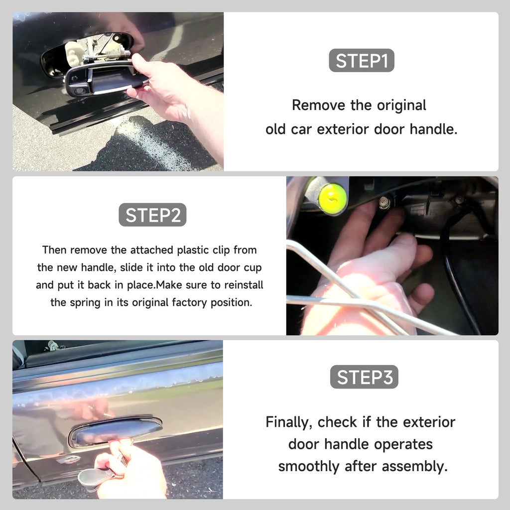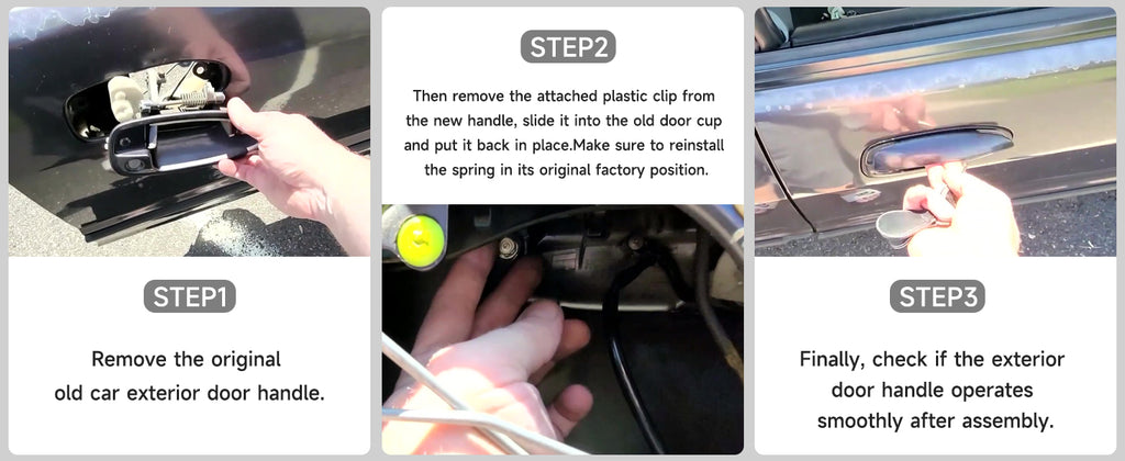 새로운 손잡이에 포함된 플라스틱 클립을 제거한 후, 오래된 도어 컵에 끼운 후 다시 끼웁니다.