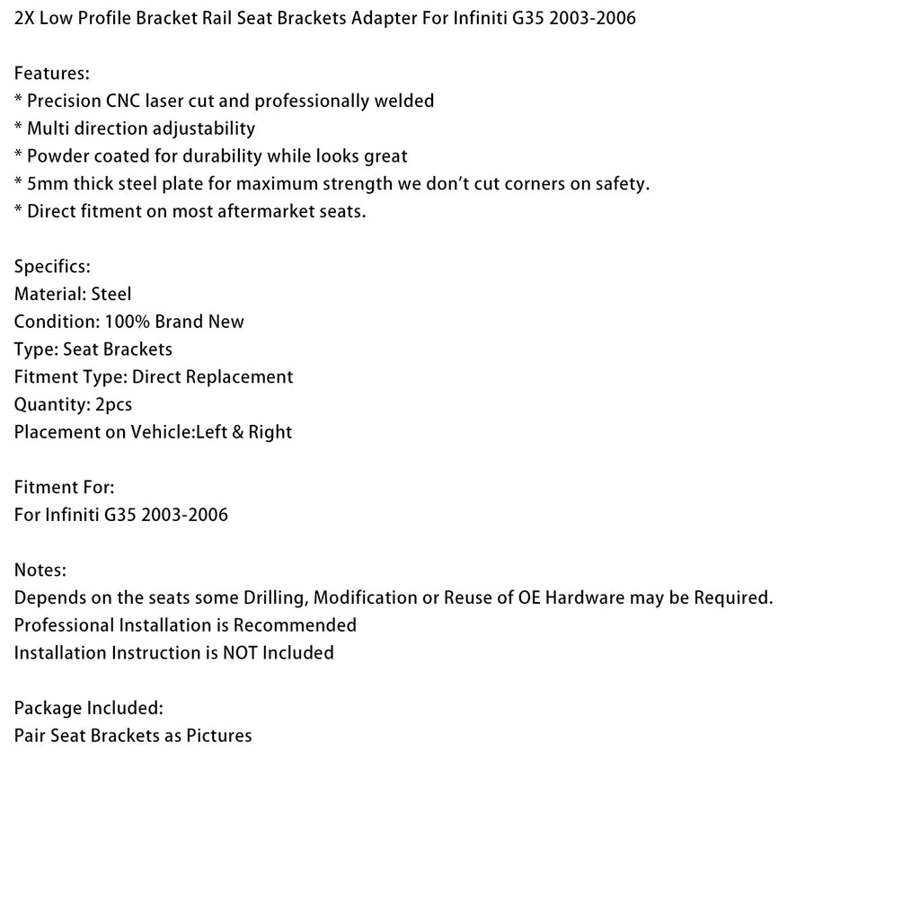 2X Low Profile Bracket Rail Seat Brackets Adapter Fit For Infiniti G35 2003-2006