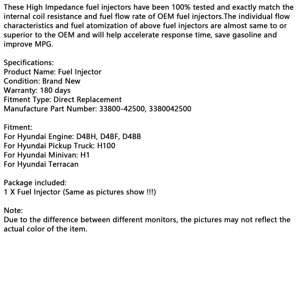 4PCS Fuel Injector 33800-42500 Fit for Hyundai D4BH D4BF Pickup H100 Minivan H1