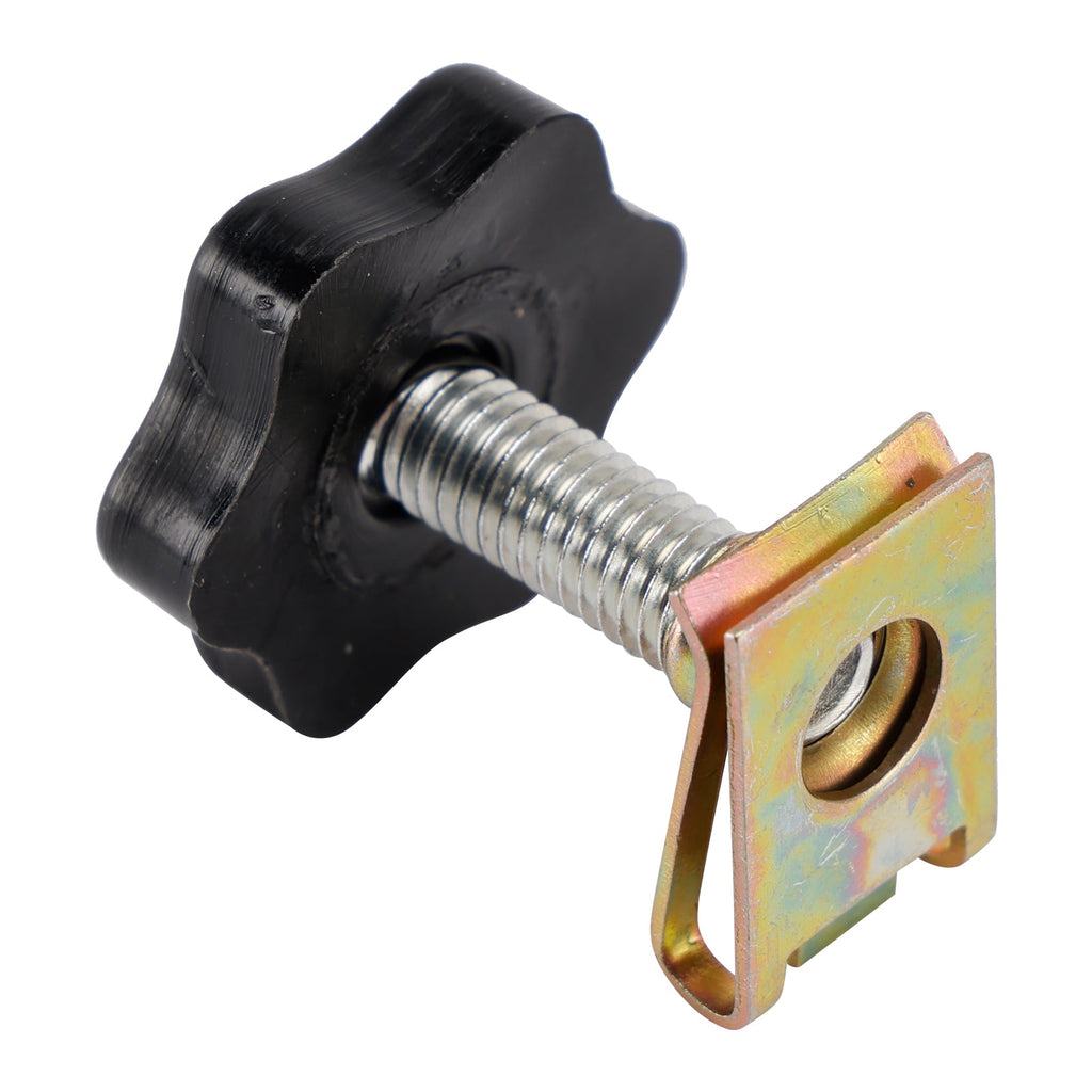 The screws in the same as any bolt theft deterrent system, but improves upon the typical design with bolts that will not protrude through the threaded part of the U-clip, making it virtually impossible to reach with any tool and unscrew them.
