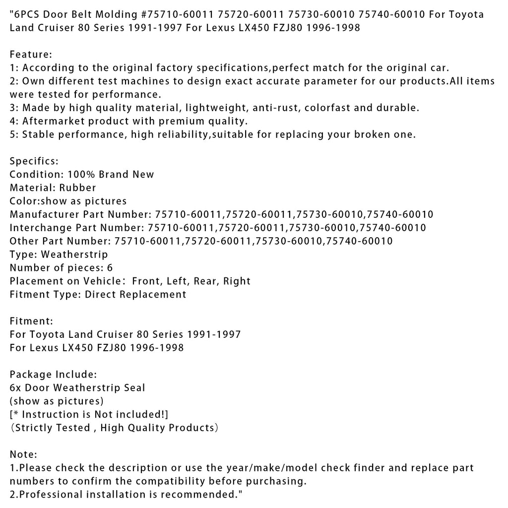 6PCS Door Belt Molding #75710-60011 75720-60011 75730-60010 75740-60010 For Toyota Land Cruiser 80 Series 1991-1997 For Lexus LX450 FZJ80 1996-1998