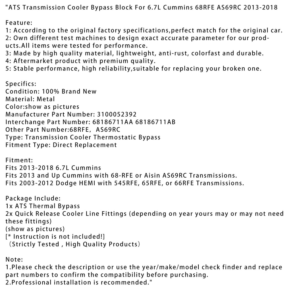 6.7L 커민스 68RFE AS69RC 2013-2018용 ATS 변속기 쿨러 바이패스 블록