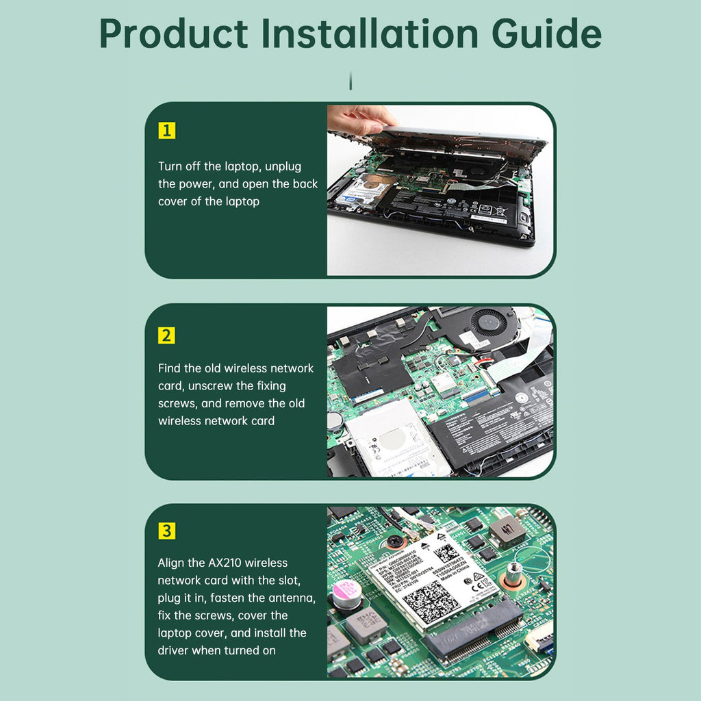 3. AX210 무선 네트워크 카드를 슬롯에 맞추고 안테나를 고정한 다음 나사를 조여 노트북 커버를 덮고 컴퓨터를 켜서 드라이버를 설치합니다.