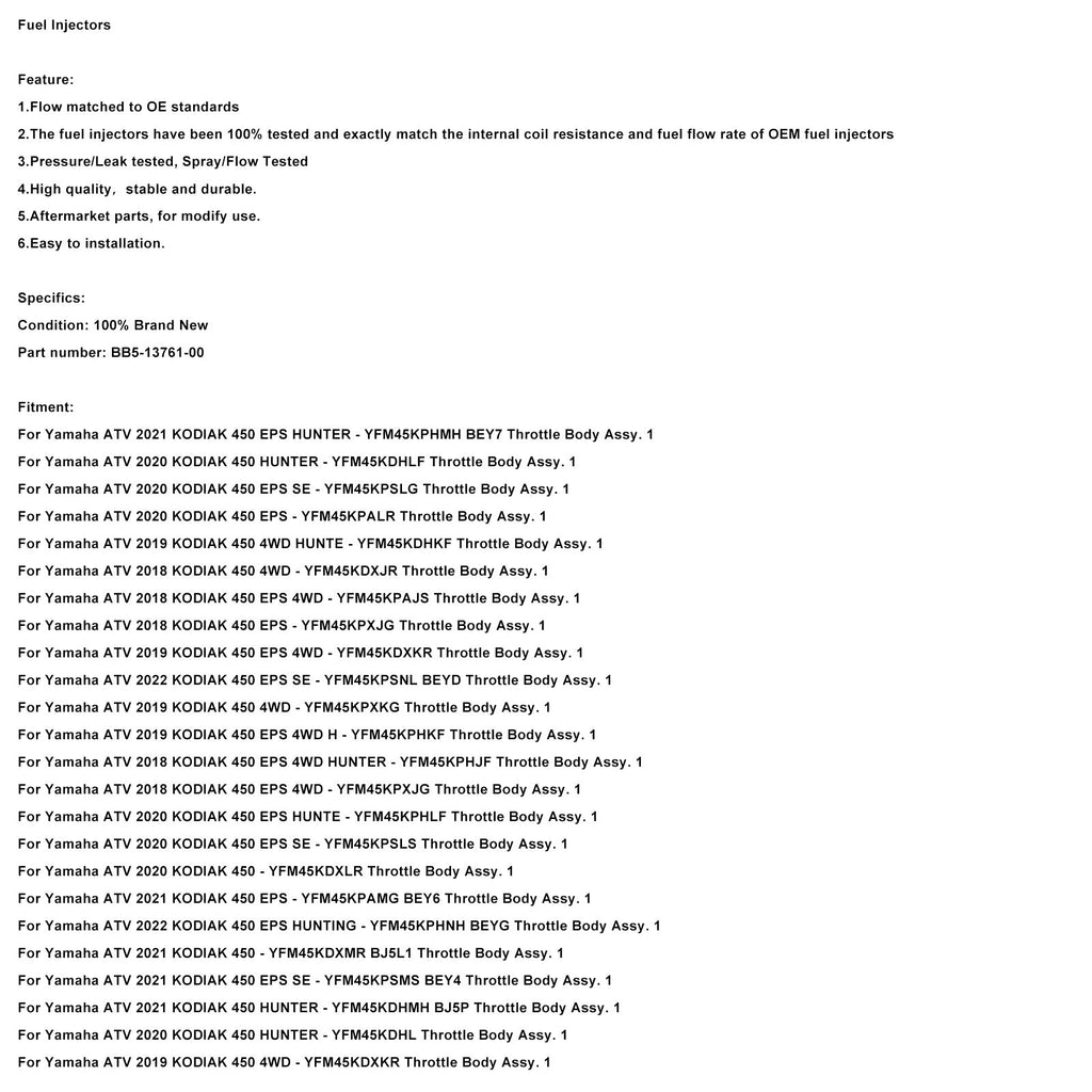 Fuel Injectors Fit for Yamaha KODIAK 450 2018-2022