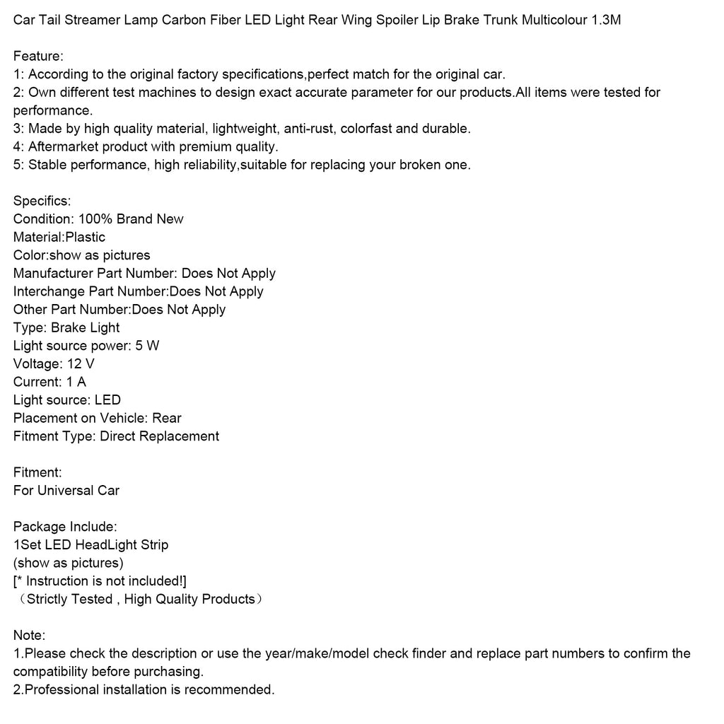 Car Tail Streamer Lamp Carbon Fiber LED Light Rear Wing Spoiler Lip Brake Trunk Multicolour 1.3M