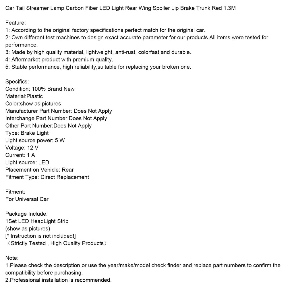 Car Tail Streamer Lamp Carbon Fiber LED Light Rear Wing Spoiler Lip Brake Trunk Red 1.3M