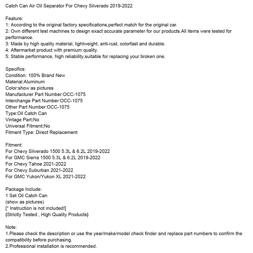 Catch Can Air Oil Separator For Chevy Silverado 2019-2022