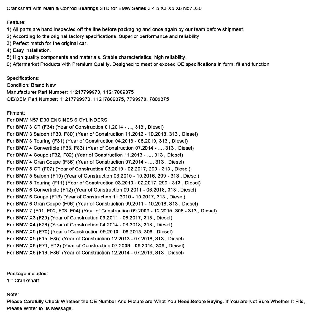 Crankshaft with Main & Conrod Bearings STD for BMW Series 3 4 5 X3 X5 X6 N57D30