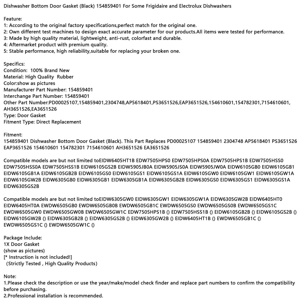 154859401 Dishwasher Bottom Door Gasket (Black). This Part Replaces PD00025107 154859401 2304748 AP5618401 PS3651526 EAP3651526 154610601 154782301 7154610601 AH3651526 EA3651526