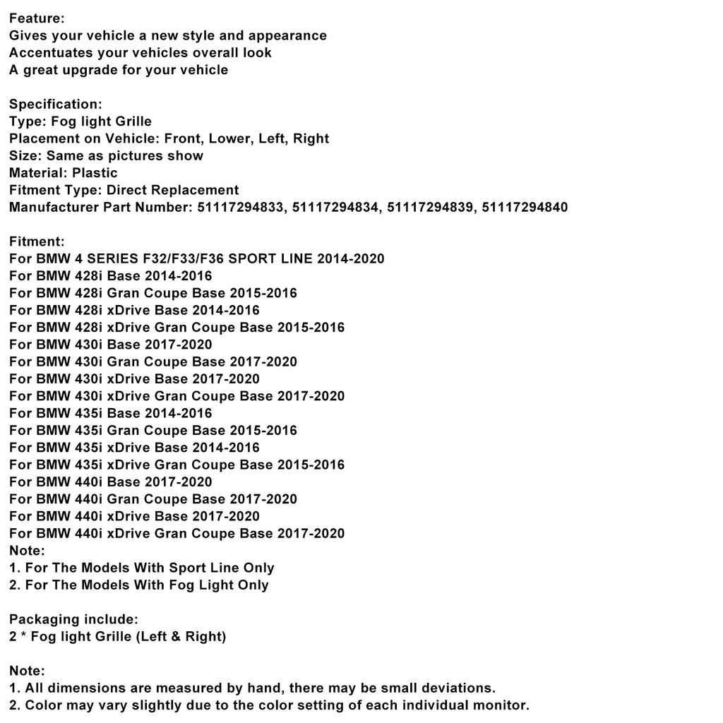 Fog Lamp Light Cover Insert Grill Grille 51117294831 Fit for BMW F32 F33 F36 418D