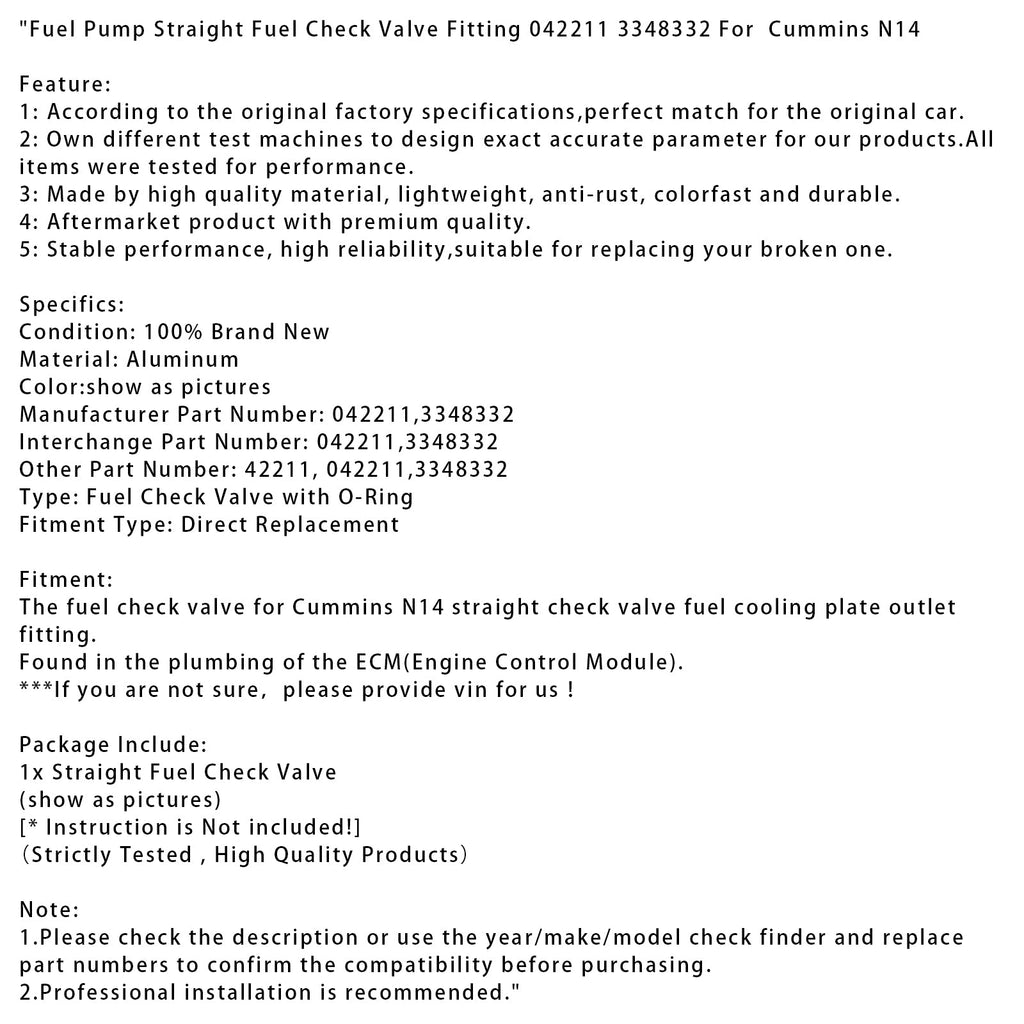 Fuel Pump Straight Fuel Check Valve Fitting 042211 3348332 For Cummins N14