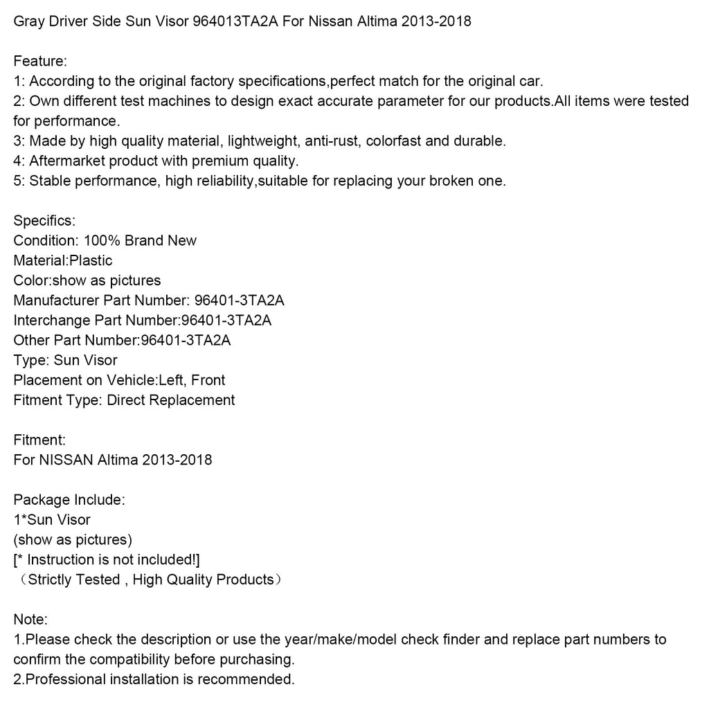Gray Driver Side Sun Visor 964013TA2A For Nissan Altima 2013-2018