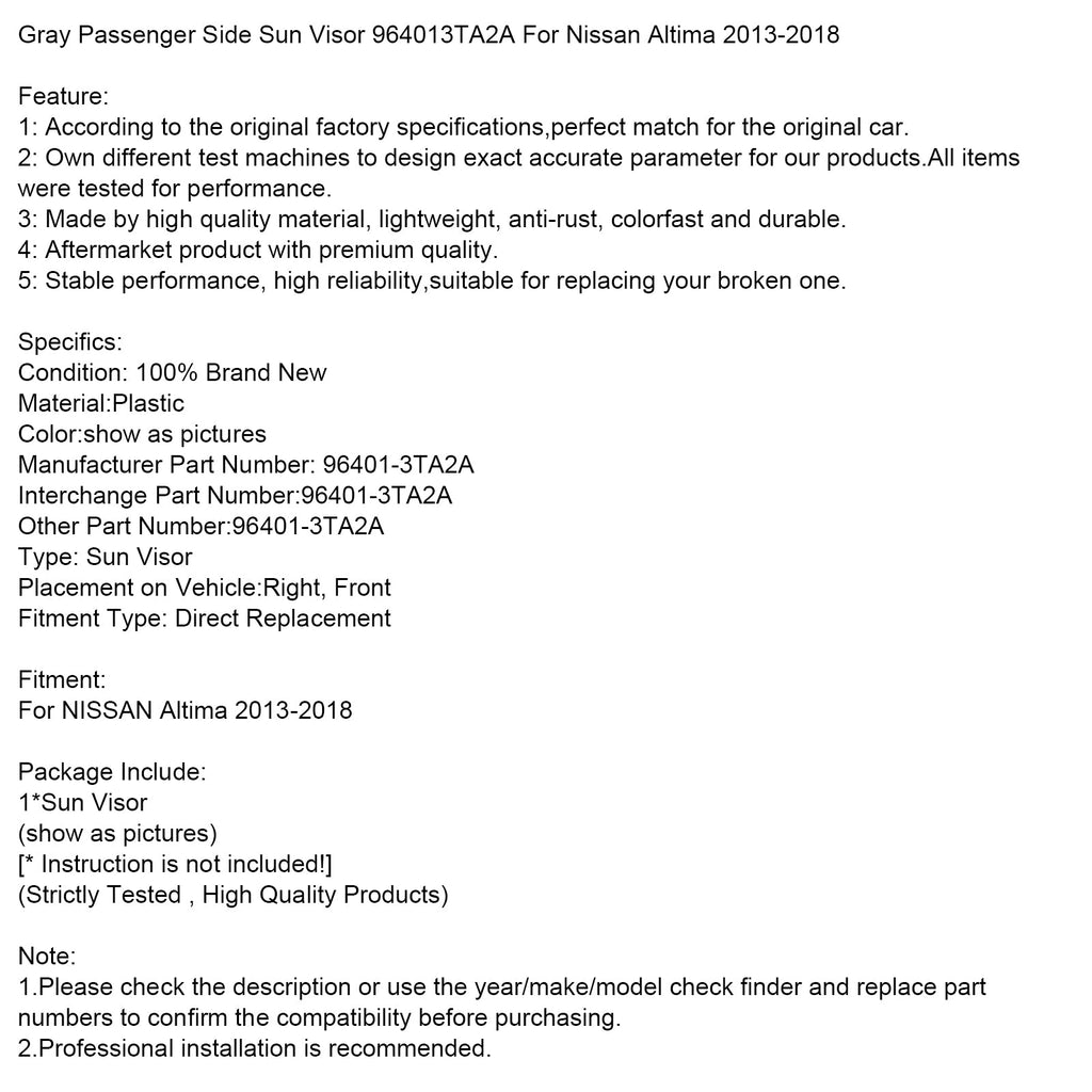 Gray Passenger Side Sun Visor 964013TA2A For Nissan Altima 2013-2018
