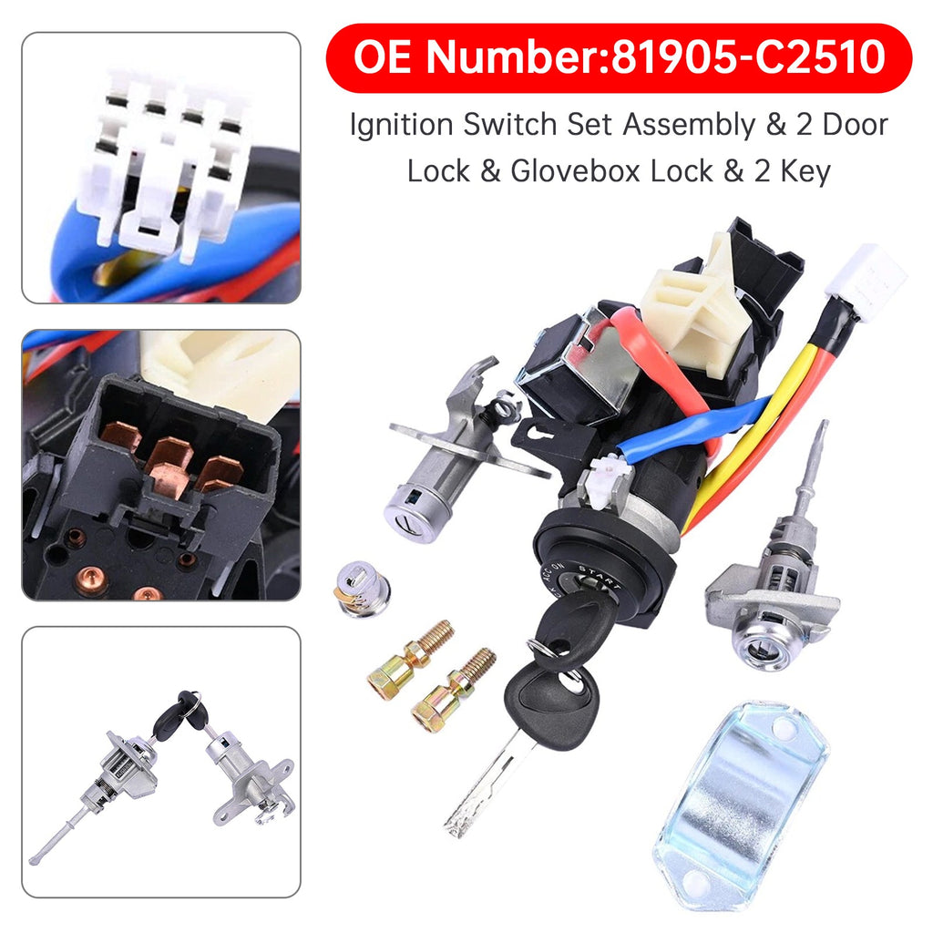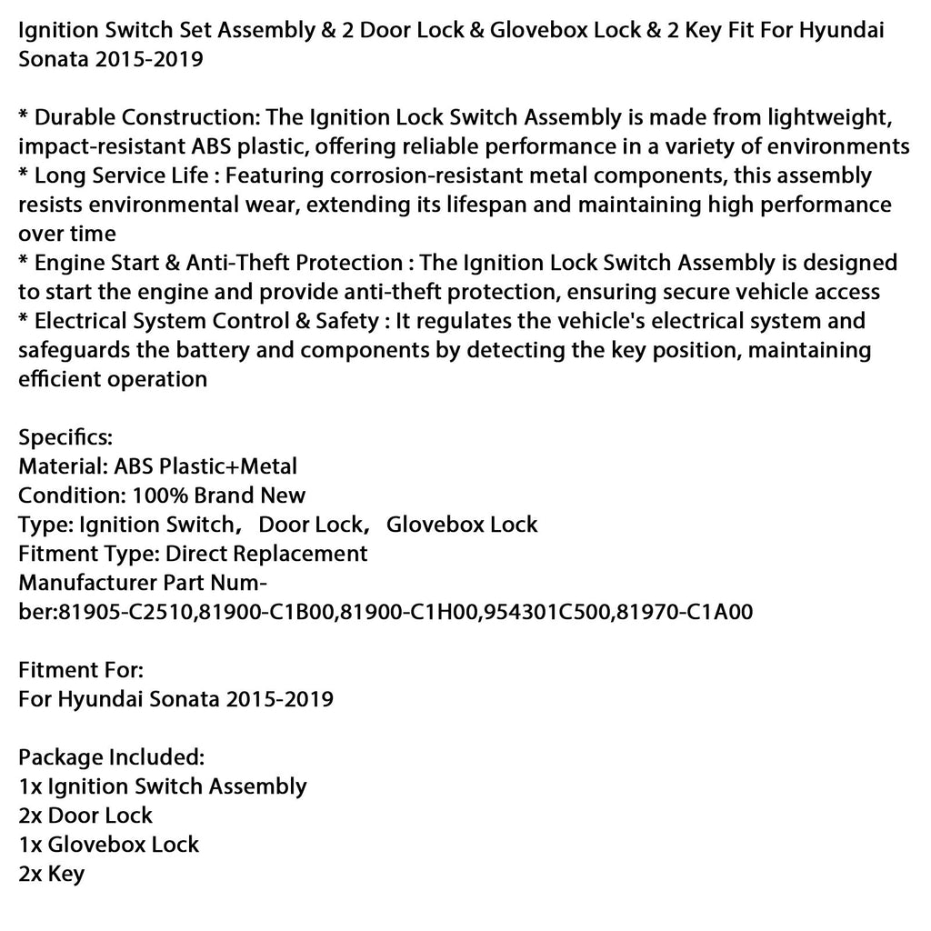 Ignition Switch Set Assembly & 2 Door Lock & Glovebox Lock & 2 Key Fit For Hyundai Sonata 2015-2019