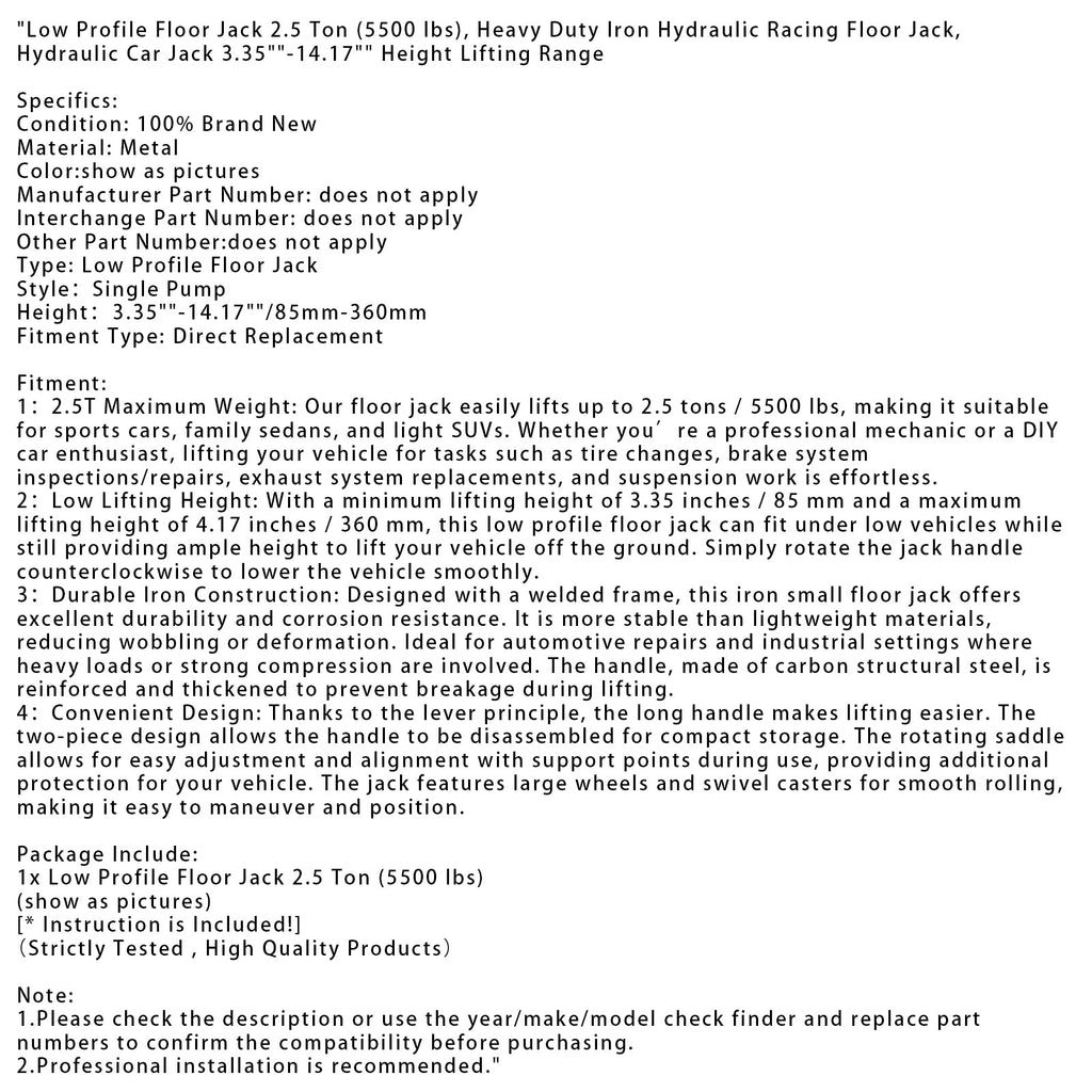 Low Profile Floor Jack 2.5 Ton (5500 lbs), Heavy Duty Iron Hydraulic Racing Floor Jack, Hydraulic Car Jack 3.35"-14.17" Height Lifting Range