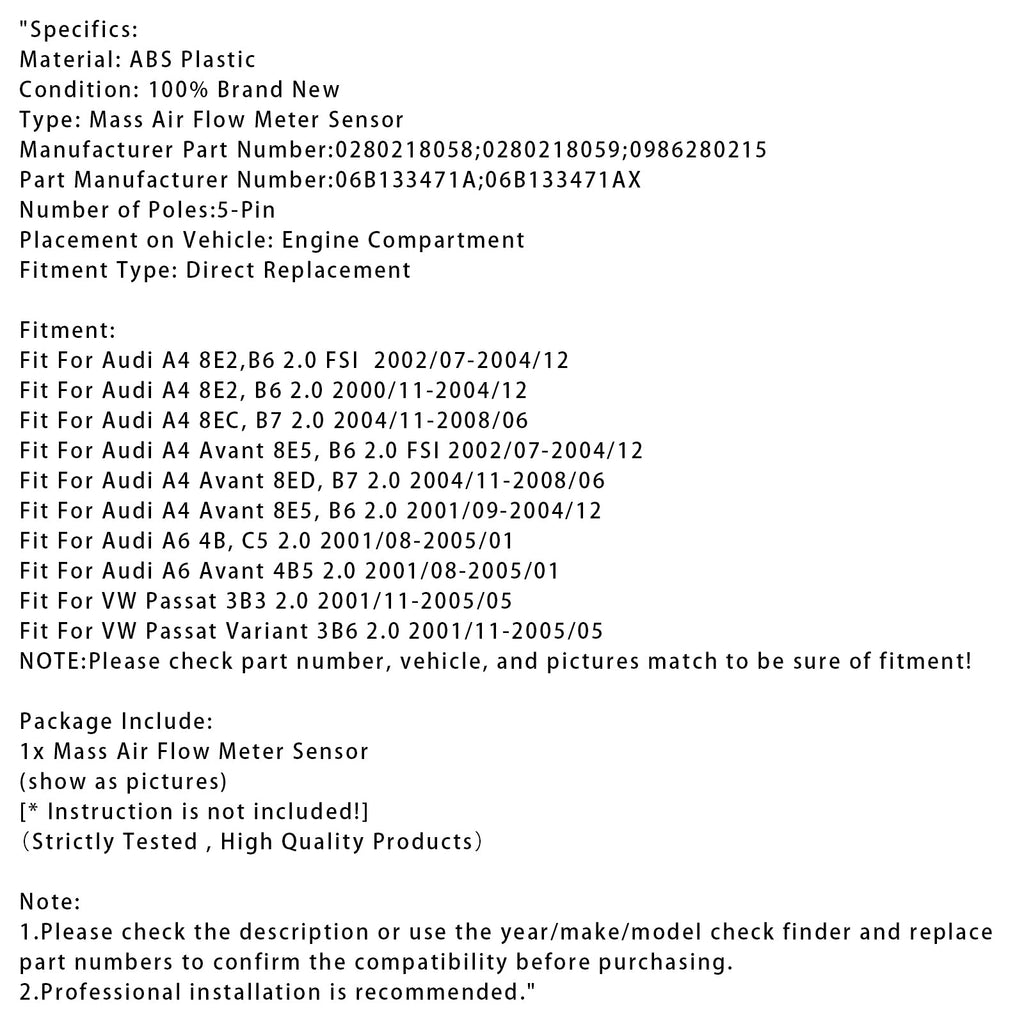 Mass Air Flow Meter Sensor For Audi A4 B6 B7 A6 C5 VW Passat 3B 2.0L 0280218058