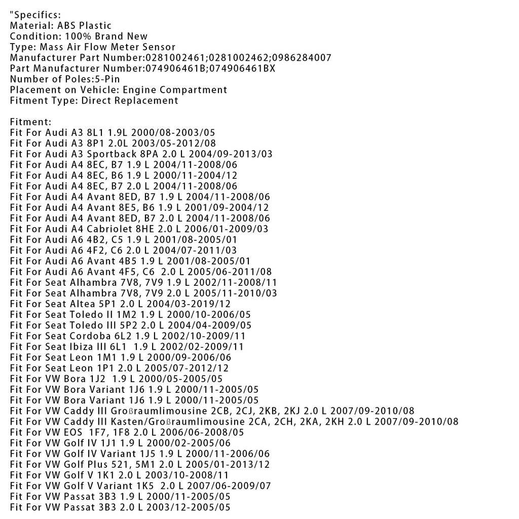 Mass Air Flow Meter Sensor For Audi A4 Golf IV VW Passat 3B Jetta III 074906461B