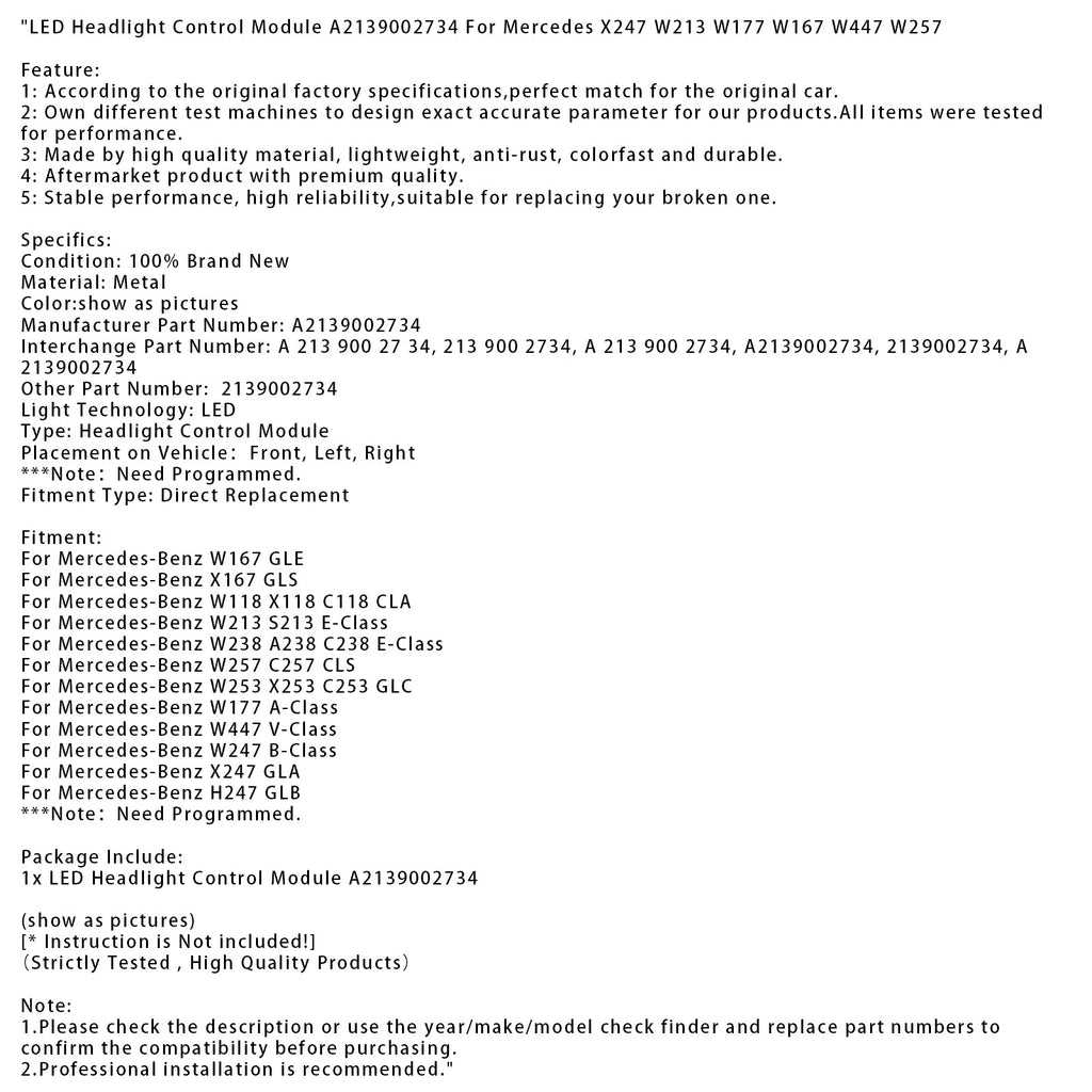LED Headlight Control Module A2139002734 Fit For Mercedes X247 W213 W177 W167 W447 W257