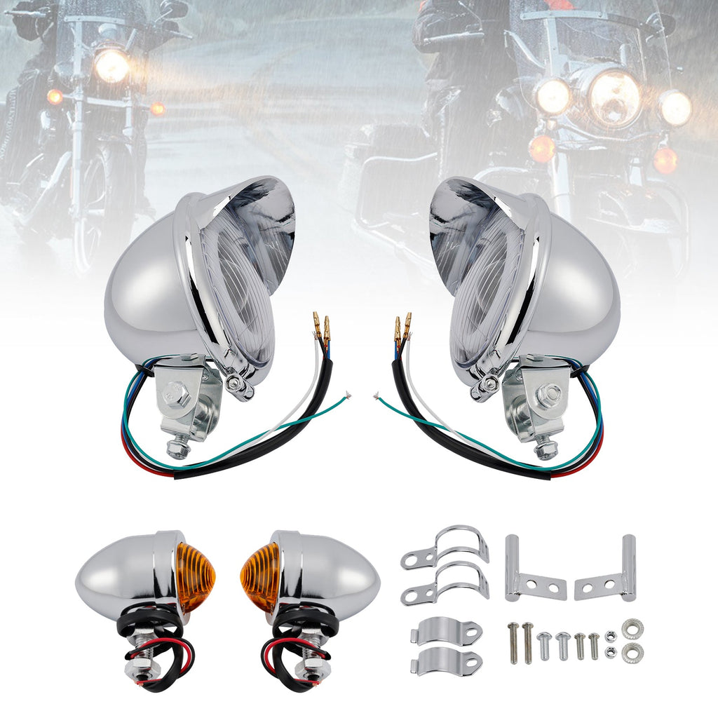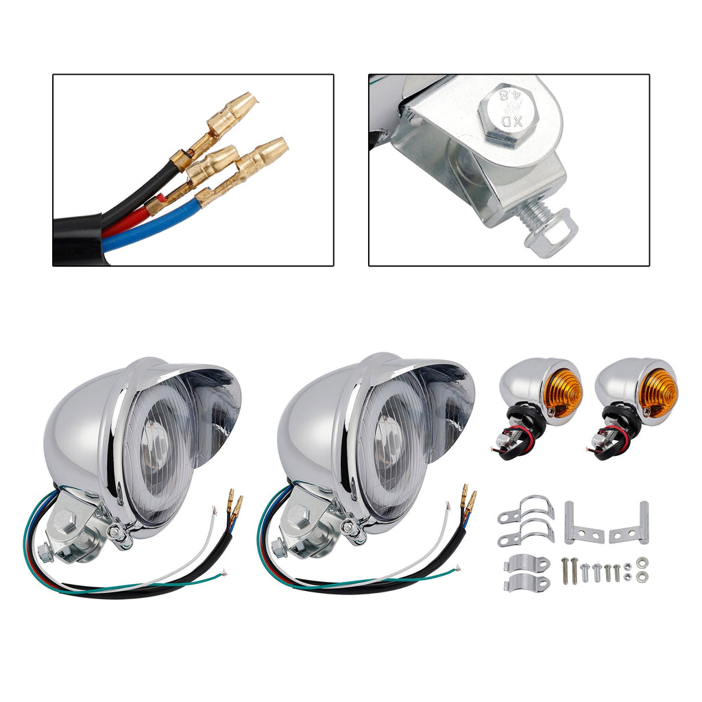 Motorcycle Beam Headlight Fog Lamp Custom Chrome Fits For Racer Bobber Chopper