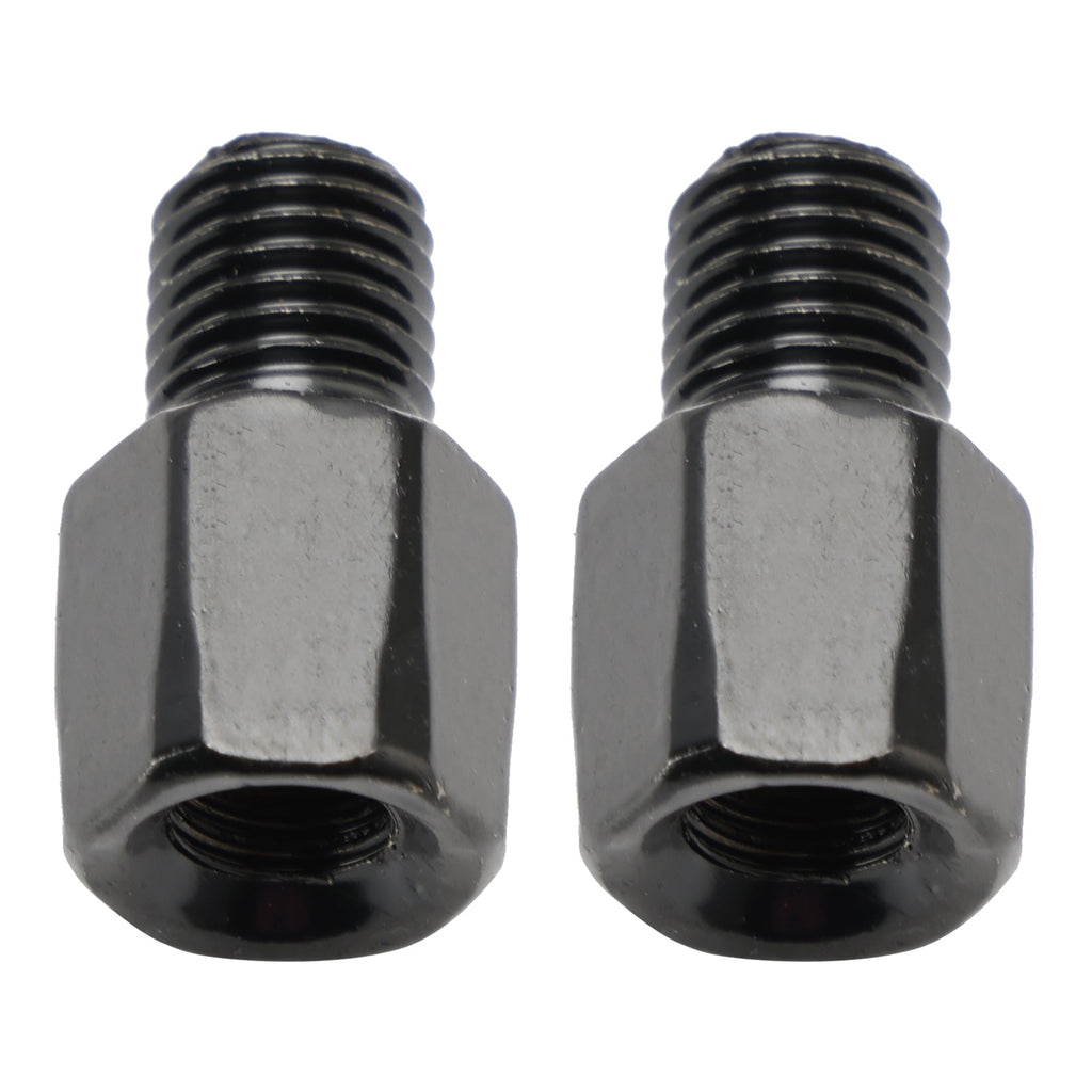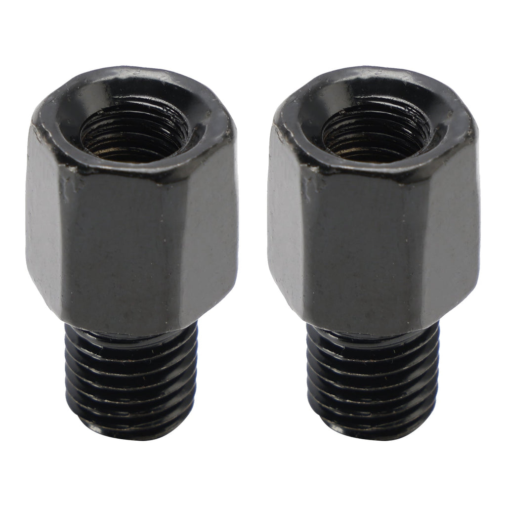 검은색 금속 오토바이용 거울 어댑터 한 쌍입니다.