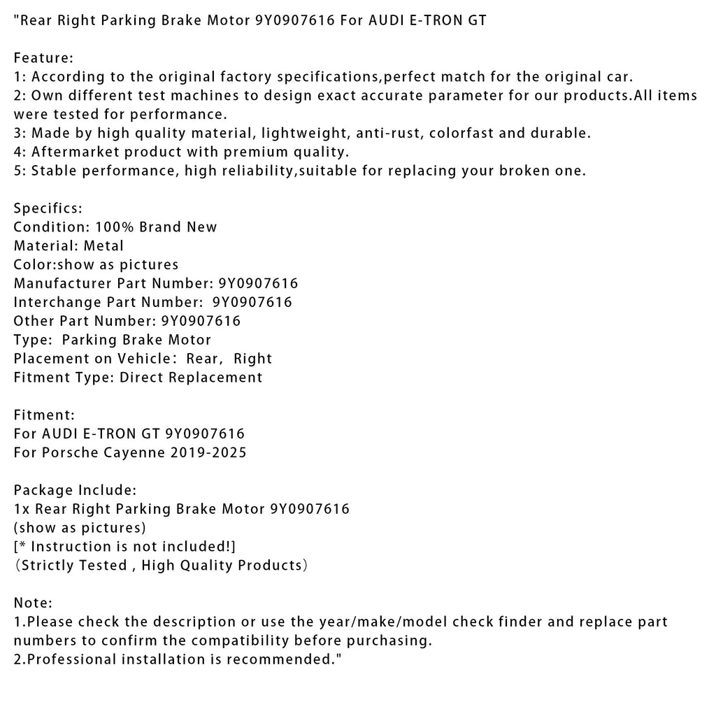 AUDI E-TRON GT용 후방 우측 주차 브레이크 모터 9Y0907616