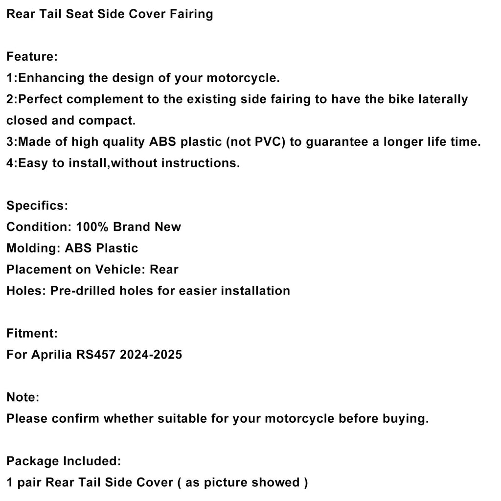Rear Tail Seat Side Cover Fairing Fit For Aprilia RS457 RS 457 2024-2025