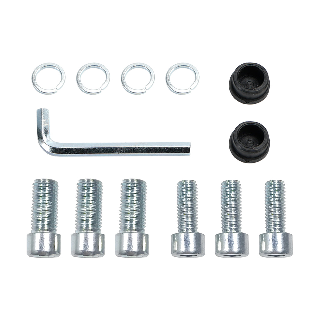 오른쪽 M8x30 볼트 2개, 오른쪽 M10x30 볼트 2개, 왼쪽 M10x30 볼트 1개, 오른쪽 M8x30 볼트 1개, 칼라 및 미러 구멍 캡이 포함되어 있습니다.