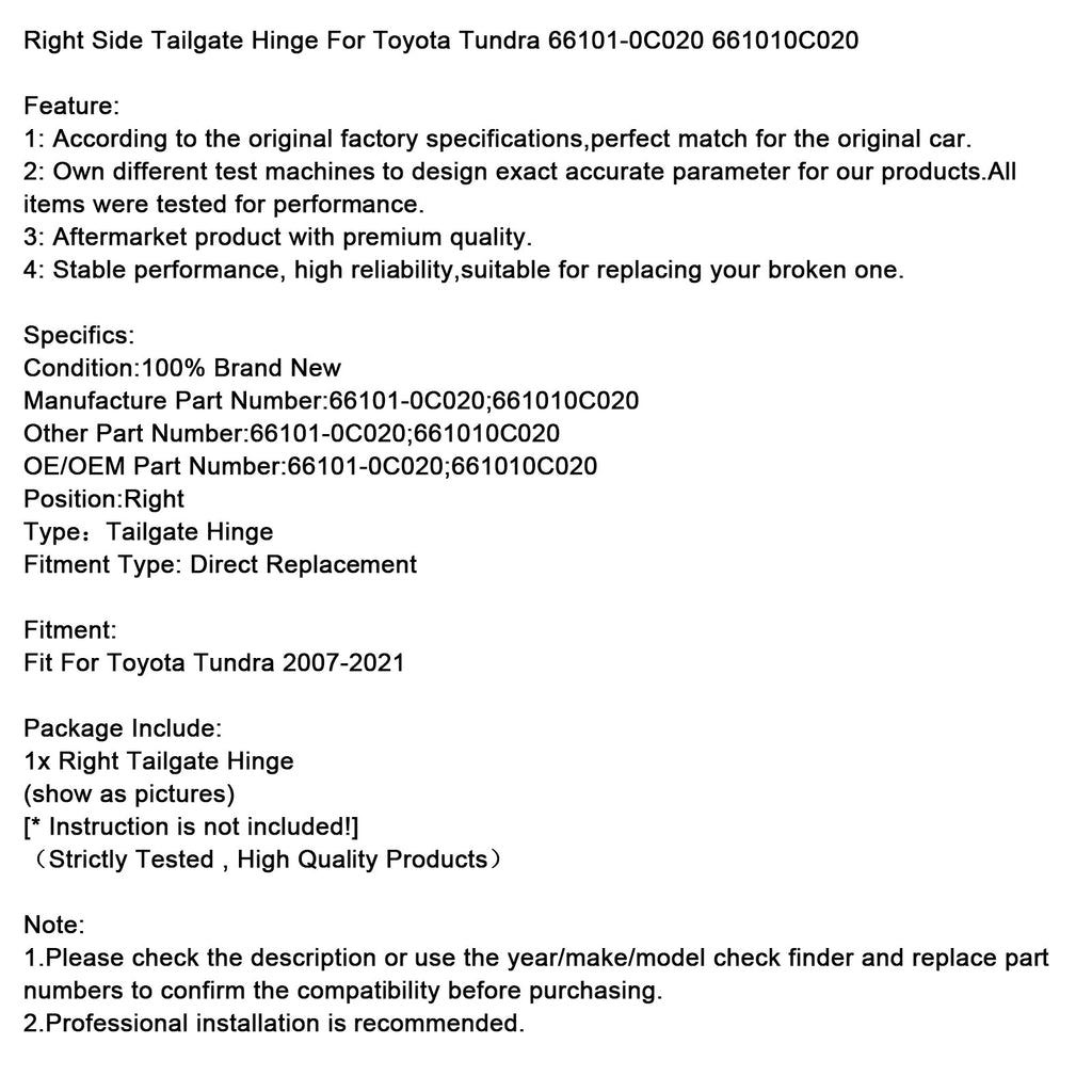 Right Side Tailgate Hinge For Toyota Tundra 66101-0C020?661010C020