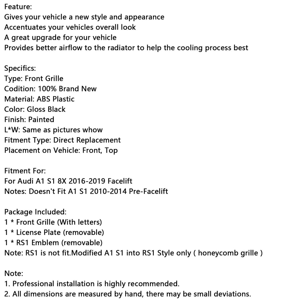 참고: RS1은 적합하지 않습니다. A1 S1을 RS1 스타일로만 수정(벌집형 그릴)