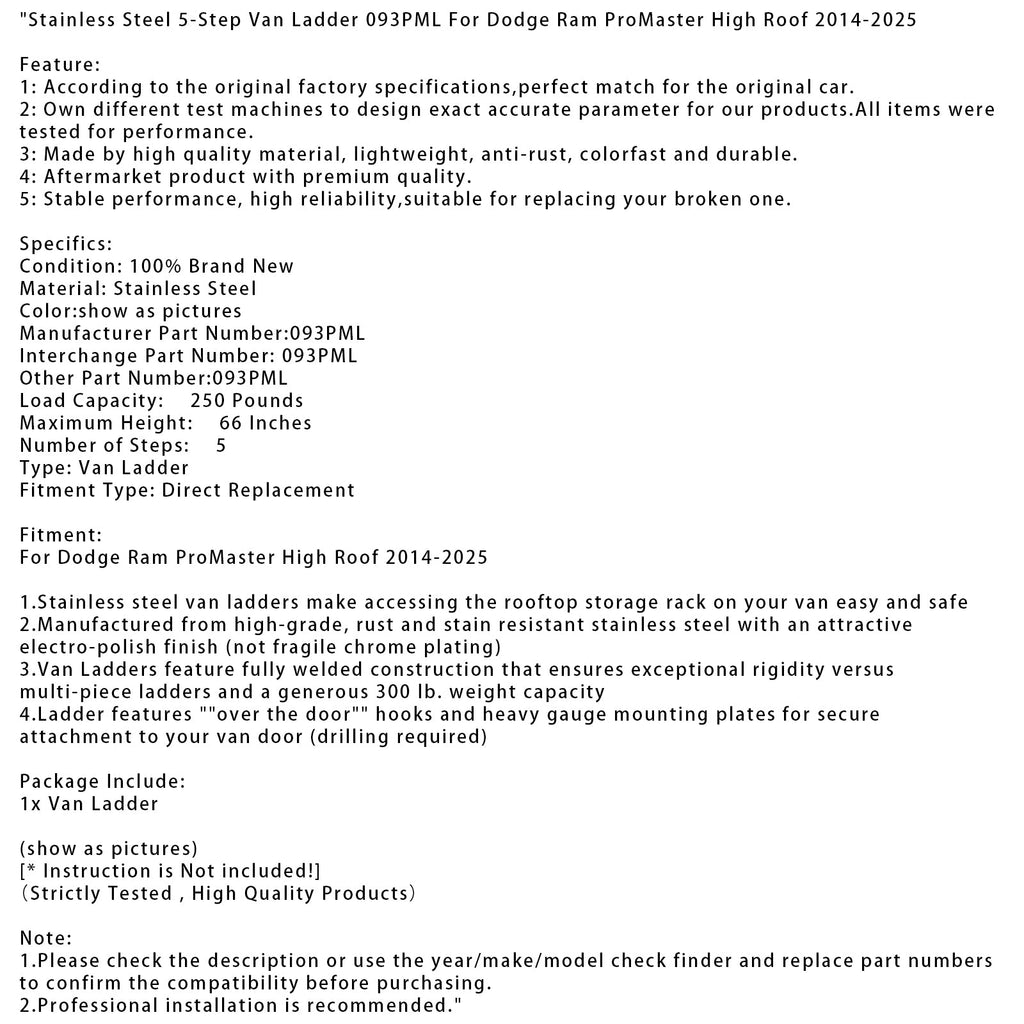 Stainless Steel 5-Step Van Ladder 093PML Fit For Dodge Ram ProMaster High Roof 2014-2025?