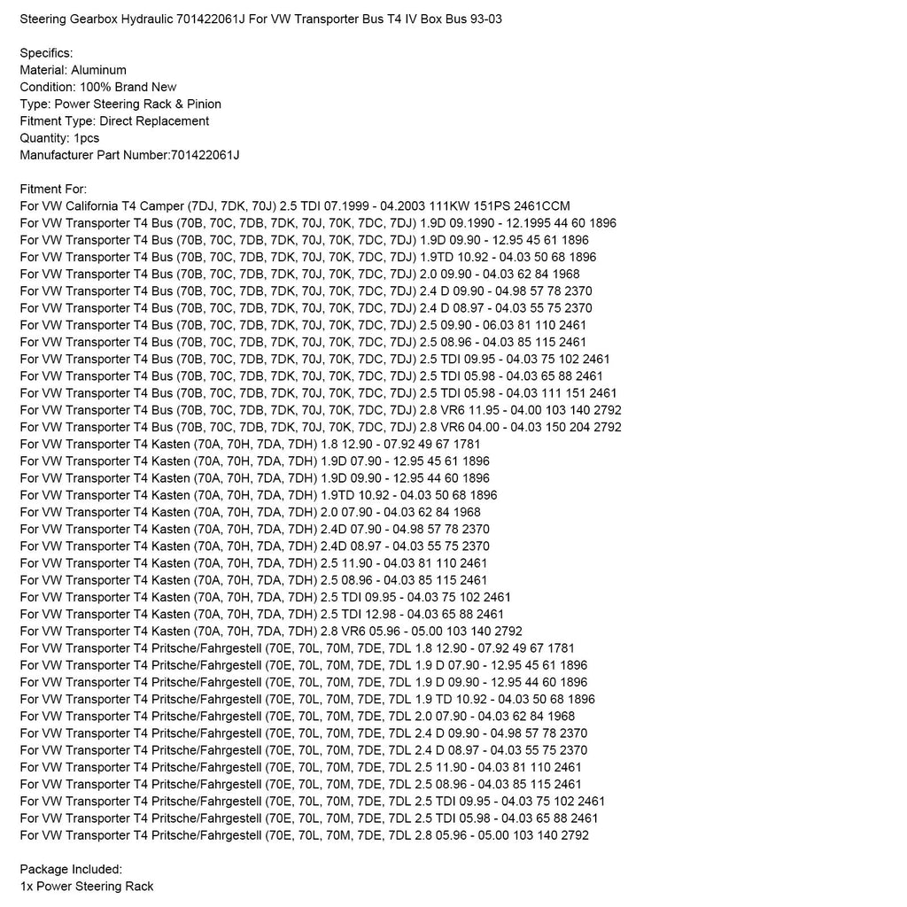 Steering Gearbox Hydraulic 701422061J For VW Transporter Bus T4 IV Box Bus 1993-2003