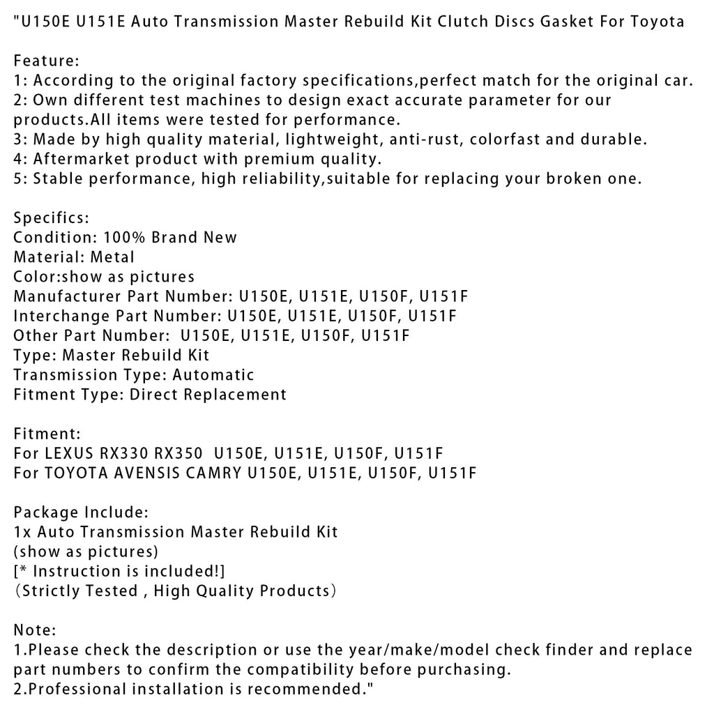 U150E U151E Auto Transmission Master Rebuild Kit Clutch Discs Gasket For Toyota