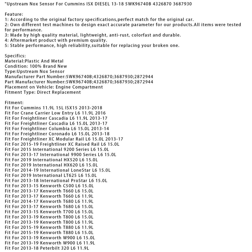 Upstream Nox Sensor For Cummins ISX DIESEL 13-18 5WK96740B 4326870 3687930