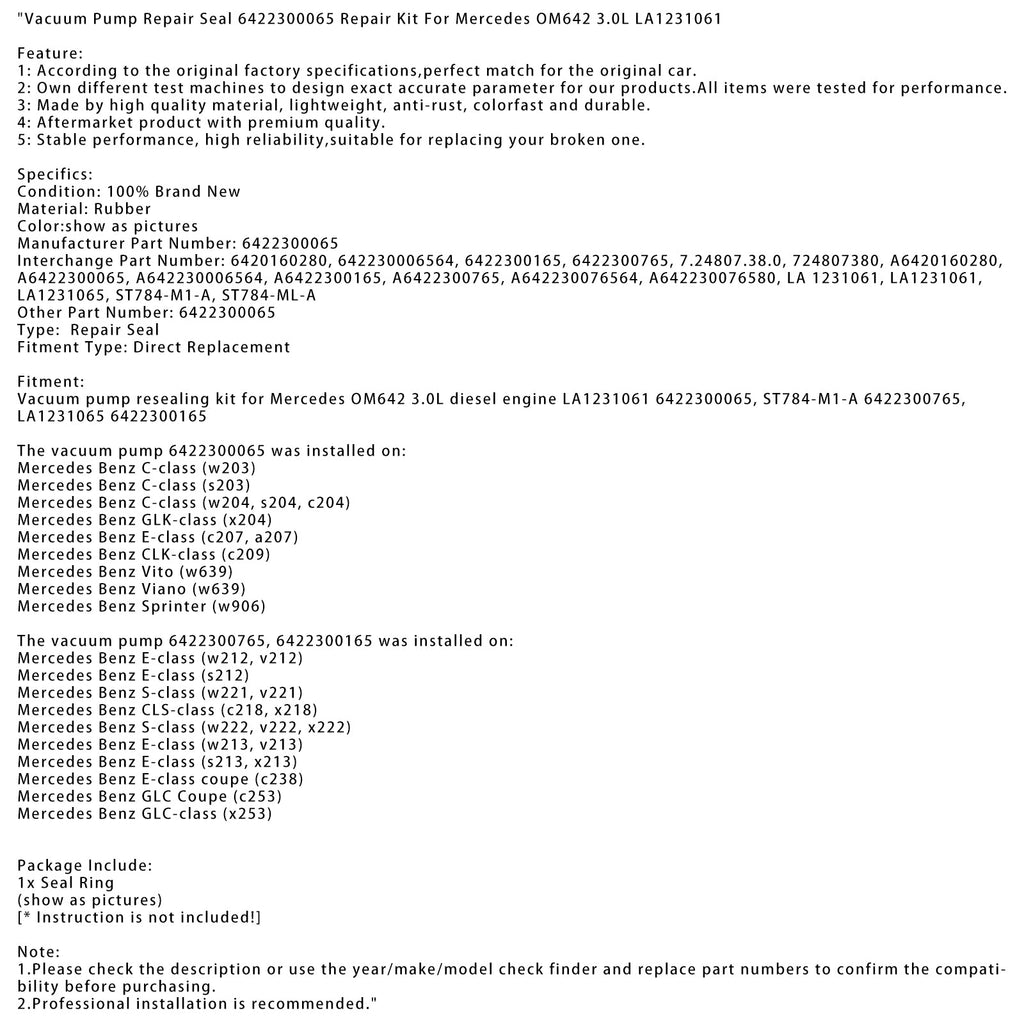 메르세데스 OM642 3.0L 디젤 엔진용 진공 펌프 재밀봉 키트 LA1231061 6422300065, ST784-M1-A 6422300765, LA1231065 6422300165